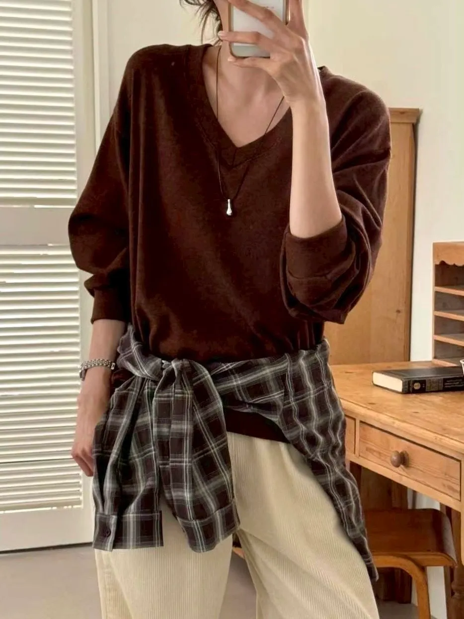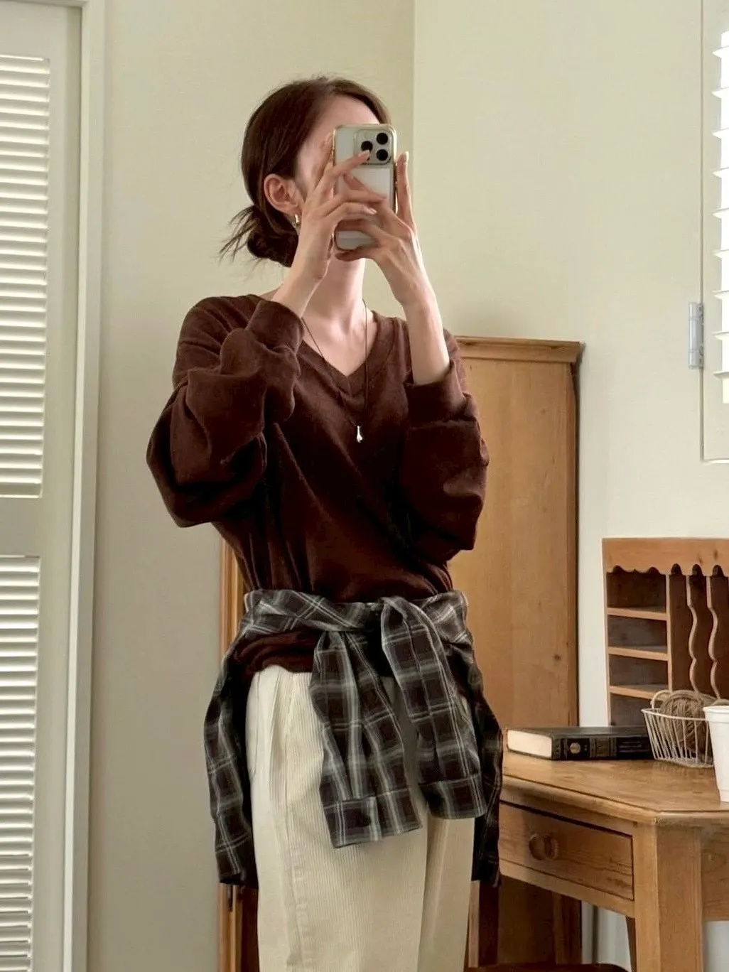 顏色:米白色 / 燕麥色 / 灰色 / 咖啡色 尺寸:Free Size 材質:acrylic+poly+nylon+span 秋冬必備柔軟親膚針織衣🍁 單穿或疊穿都好看 面料柔軟不厚重 V 領設計很修飾臉型🪞 版型微寬鬆 不只可以藏肉還顯瘦 四個顏色都很溫柔又耐看 很適合包色🧺⠀