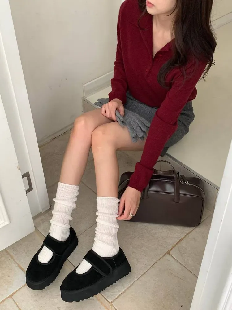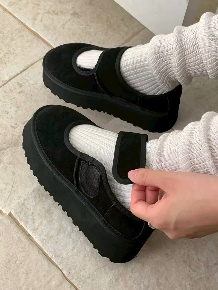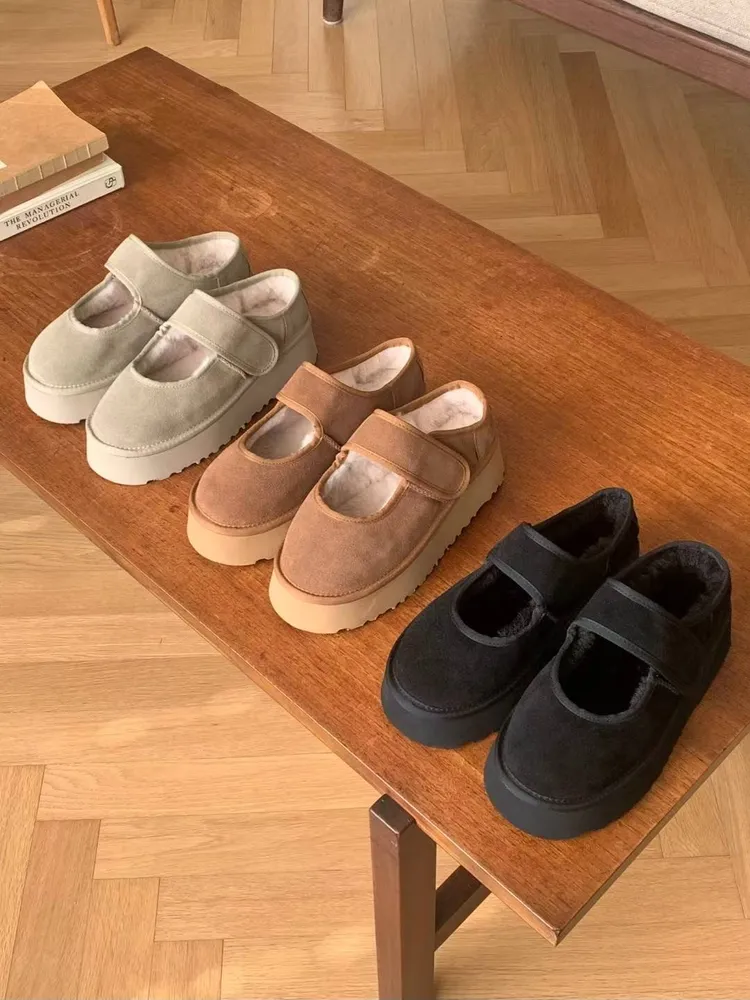 顏色:米杏色 / 駝色 / 黑色 尺寸:22.5 / 23 / 23.5 / 24 / 24.5 / 25 高度:4.5cm 內裡滿滿的毛冬天穿非常保暖✨ 厚底4.5cm~悄悄增高 自然又不誇張 鞋底防滑 走樓梯不用擔心 平日通勤也很適合😻