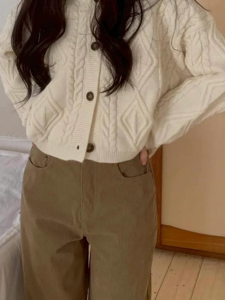 顏色:卡其色 / 咖啡色 / 黑色 尺寸:S / M / L 材質:Cordoroy100% New!!! 是溫暖的冬季色調🤎 秋冬必備燈芯絨單品~ 搭什麼都能穿出溫柔又氣質的氛圍 面料摸起來很舒服 親膚又柔軟 不愛穿長褲的人 也會愛上這件燈芯絨褲✨