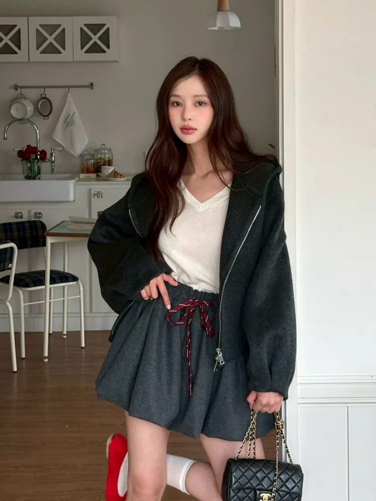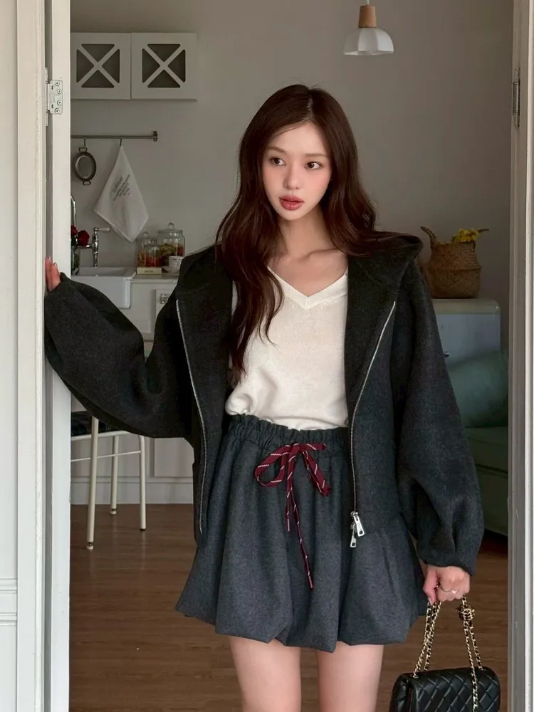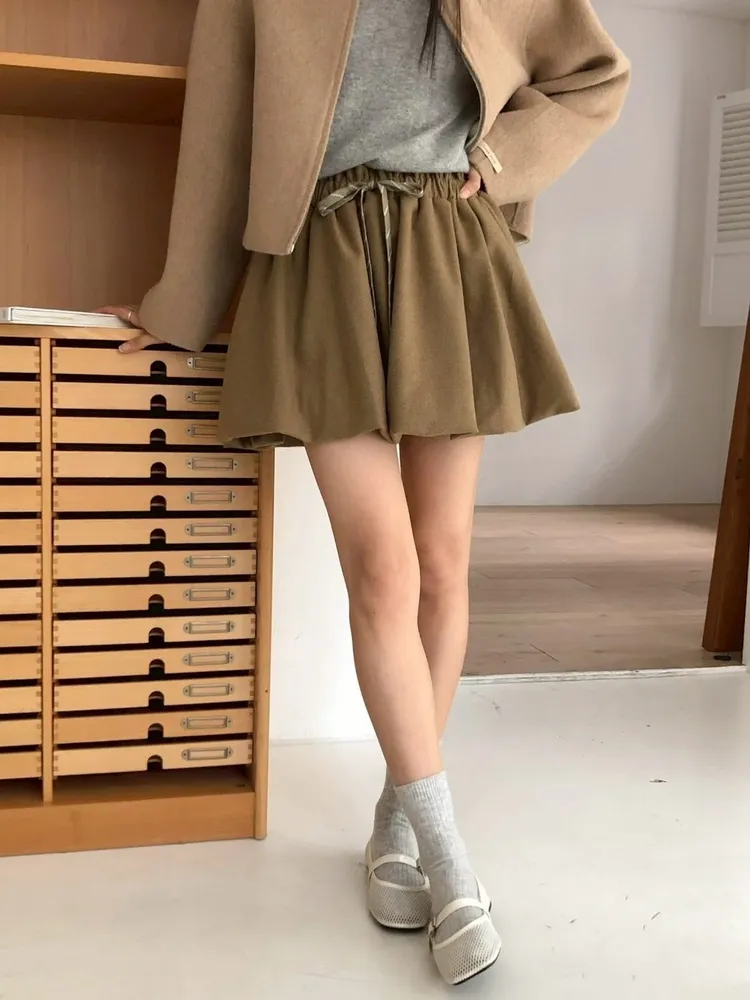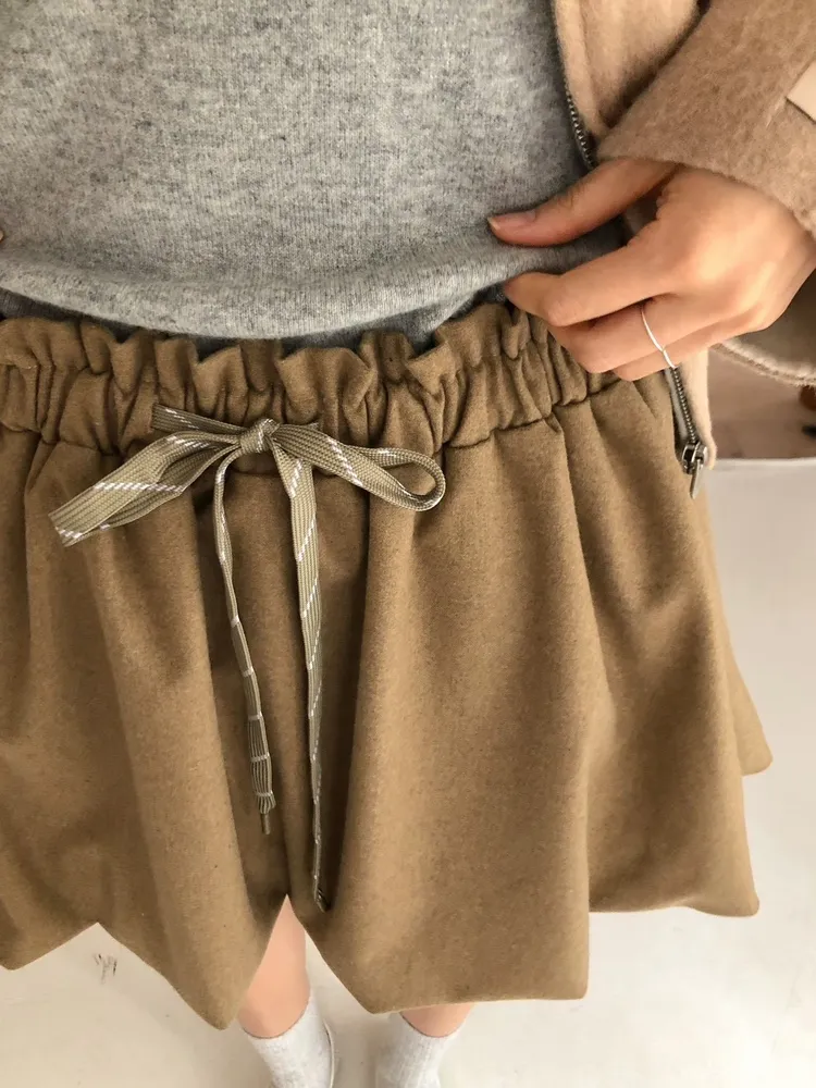 顏色:卡其色 / 深灰色尺寸:Free Size 溫暖又有造型感的褲裙🐑 wool35% 羊毛材質讓質感直接升級 輕盈好活動 傘擺剪裁修飾下身比例✨ 綁帶採用拼色線條設計🇰🇷 在素雅色系中多了一點細節亮點 小地方就能看出質感層次🎀