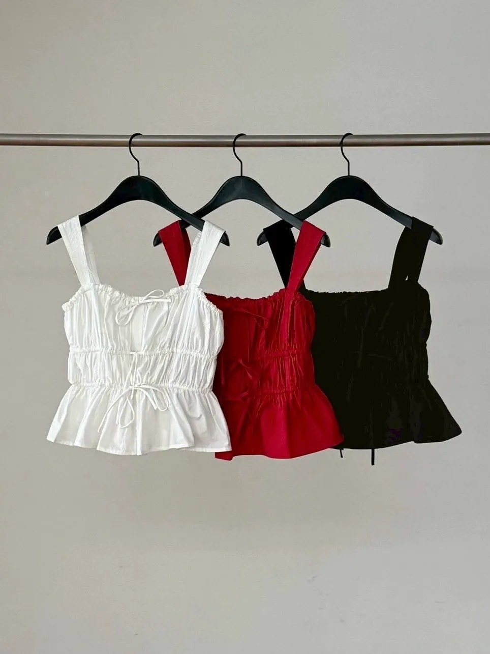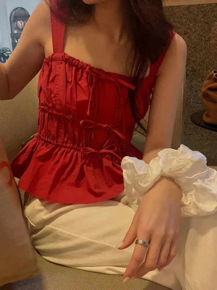 顏色:白色 / 紅色 / 黑色 尺寸:Free Size 材質:cotton100% 這款前幾年有出過 今年多了很漂亮的紅色♥️ 紅色特別顯氣色 整體帶一點喜氣的感覺😻✨ 抓皺設計讓整件背心看起來更有立體感 下擺蛋糕層次讓整體線條更輕盈🫧⠀