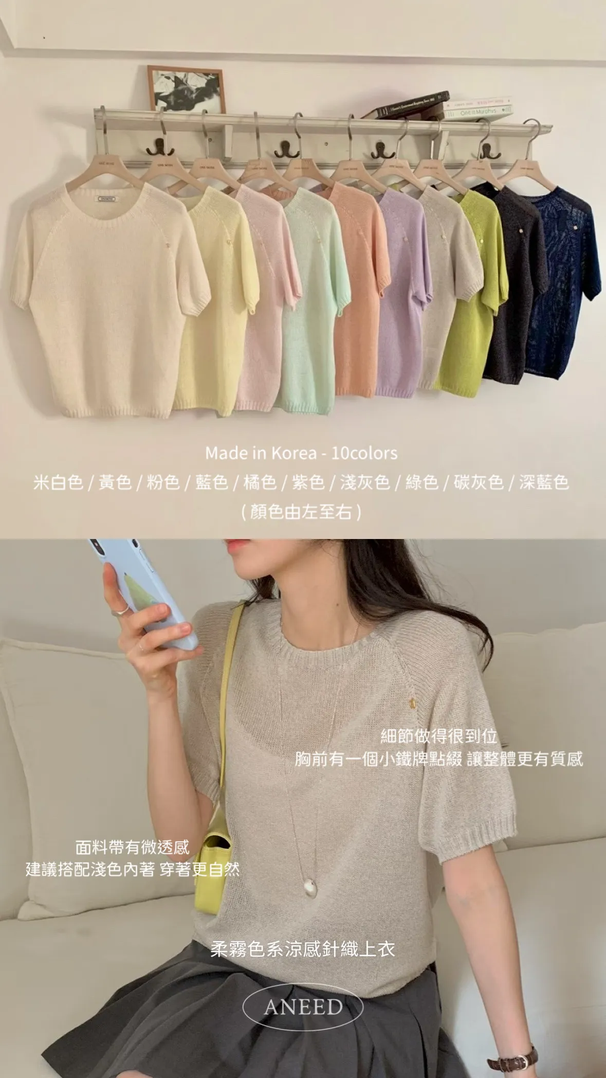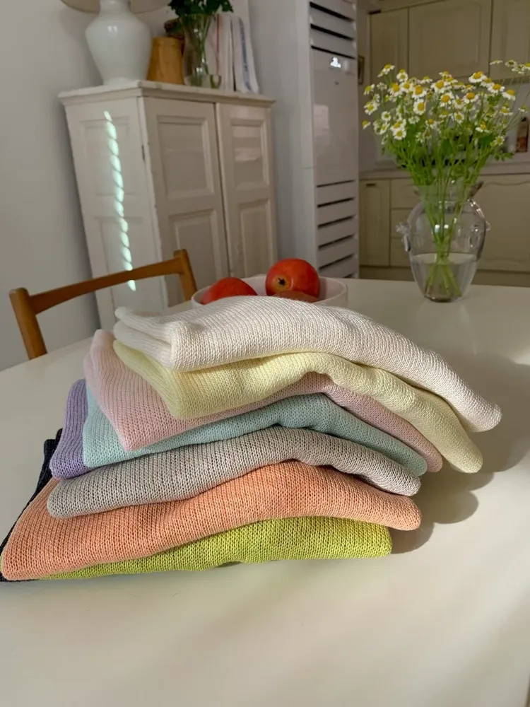 顏色:米白色 / 黃色 / 粉色 / 藍色 橘色 / 紫色 / 淺灰色 / 綠色 / 碳灰色 / 深藍色尺寸:Free Size 採用輕薄的針織面料✨ 穿著時能感受到自然的涼感與透氣性 在悶熱的季節中 依然可以保持輕盈與舒適 適合日常長時間穿著~