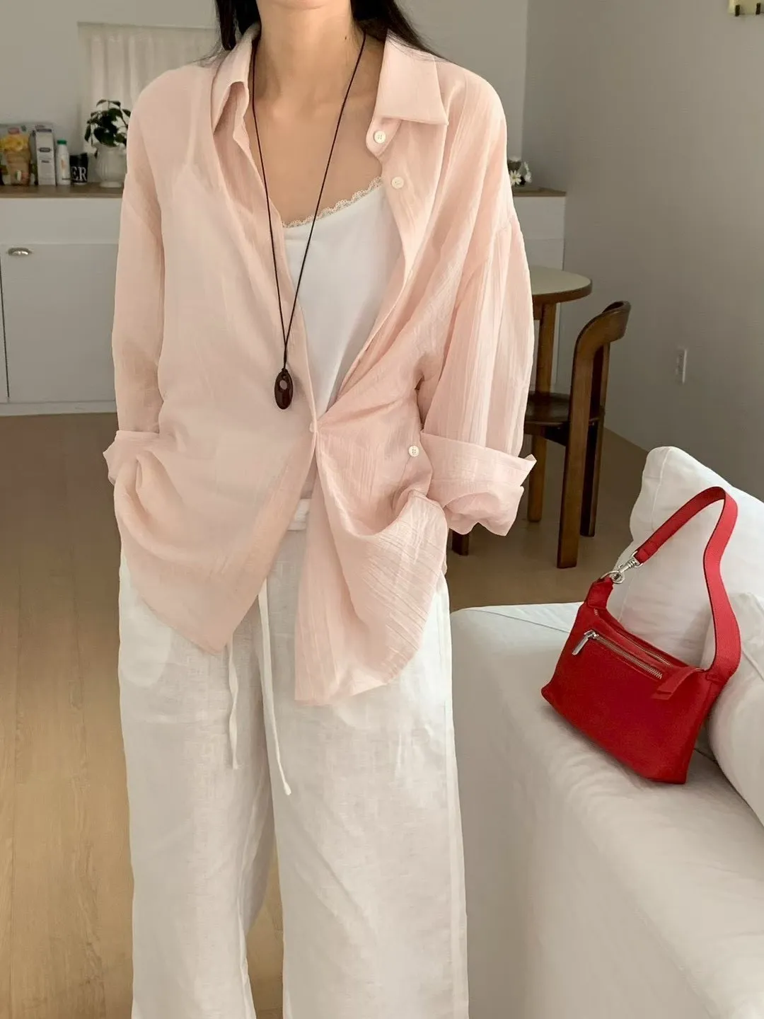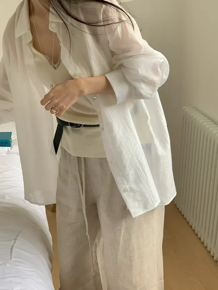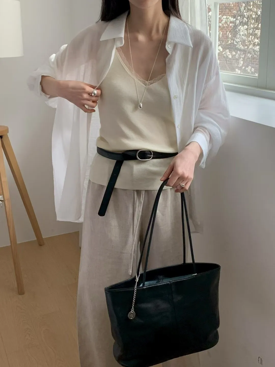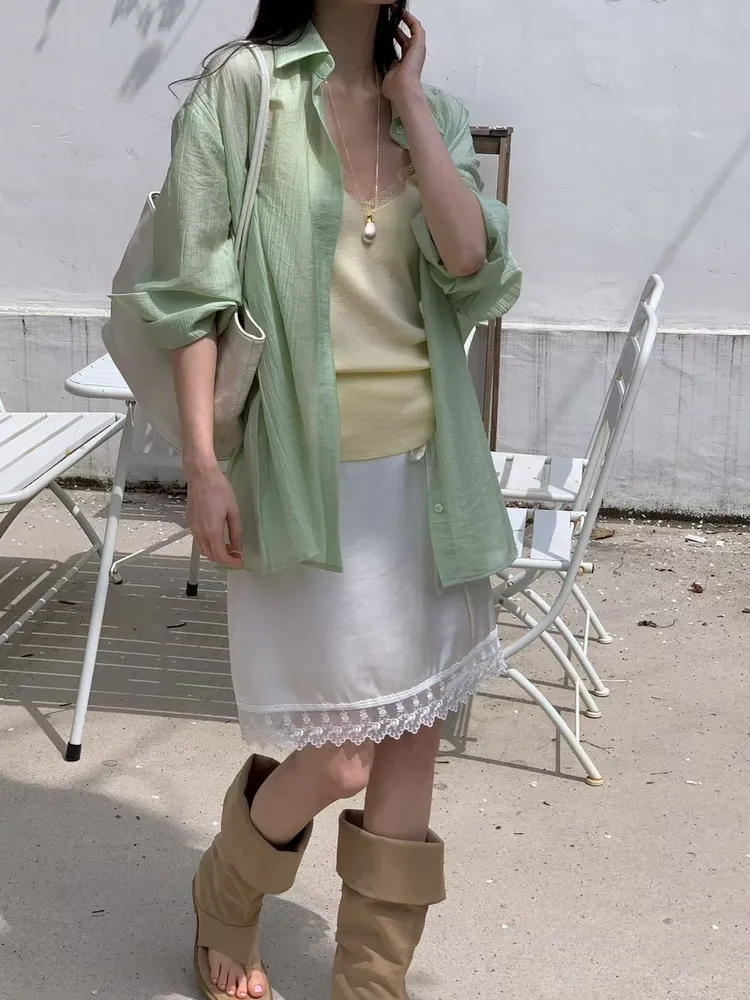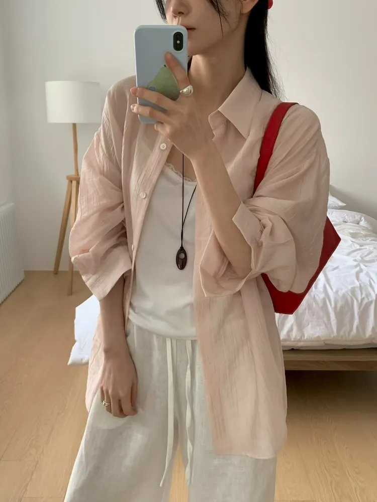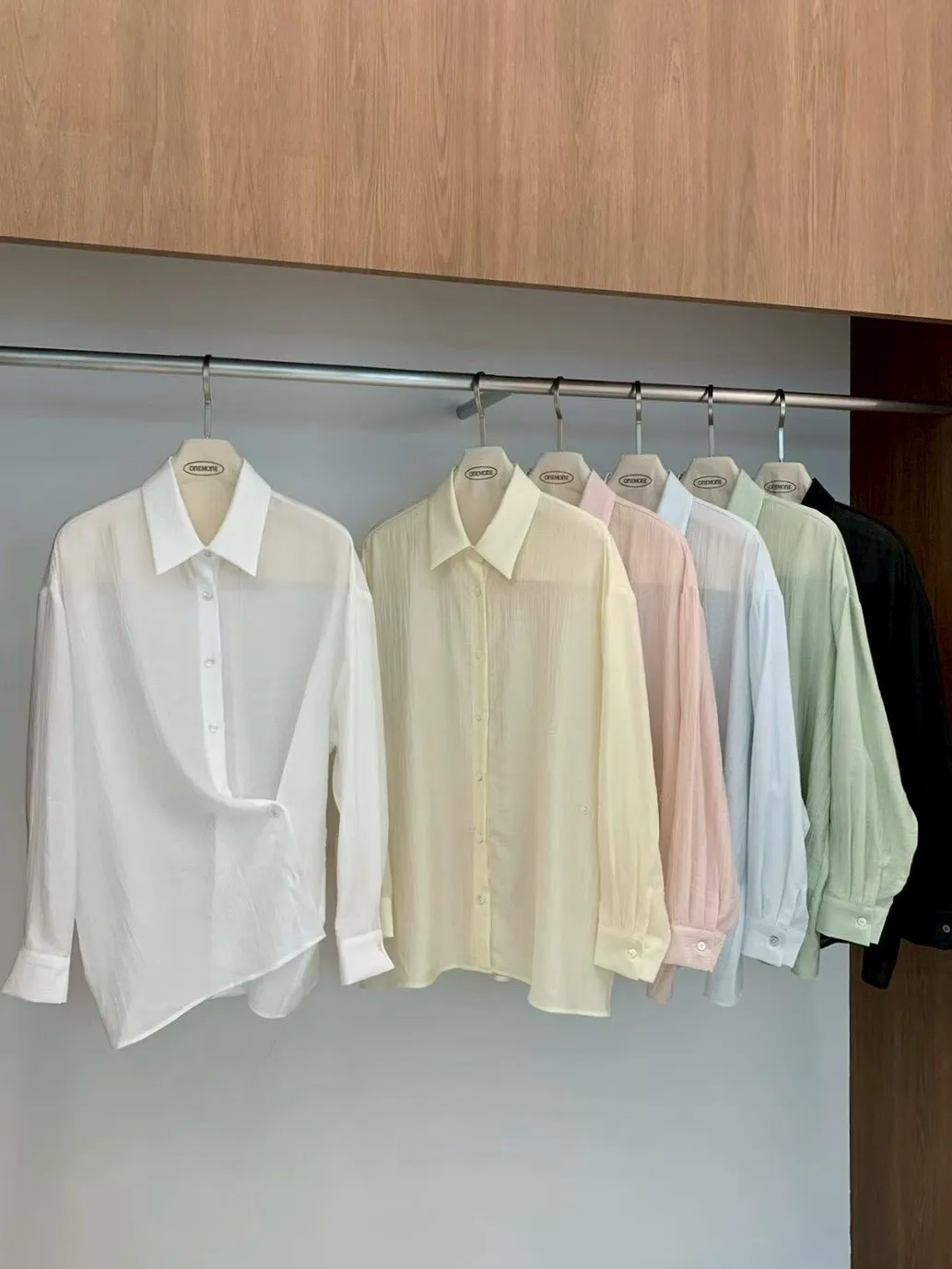 顏色:白色 / 黃色 / 粉色 / 藍色 / 綠色 / 黑色 尺寸:Free Size 這件很適合夏天穿☁️ 不只可以單穿也可以當外罩 用很輕的材質 做出剛好的層次 天絲本身的柔滑感 穿起來自然垂墜 帶一點透感 讓整體更有空氣感 同時也有基本的防曬效果🕶️✨